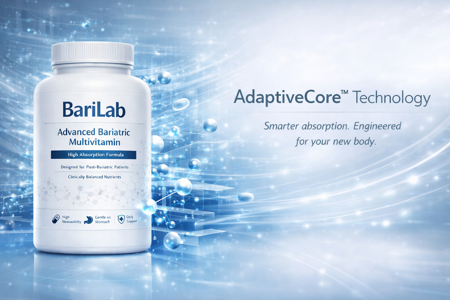 BariLab is the only multivitamin with AdaptiveCore™ technology, designed to facilitate absorption in bariatric patients.